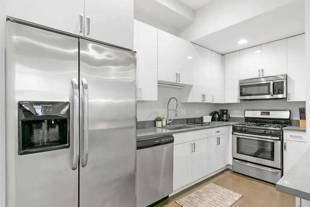Für Ihre Bequemlichkeit und Ihren Komfort ist das 2Br Trendy Urban Apartment - Division 102W 202W 302W Rep mit einer Kaffee-/Teemaschine, einem Kühlschrank und einem Herd ausgestattet. Die Unterkünfte ist in der Nähe von der Bushaltestelle Division & Leavitt.